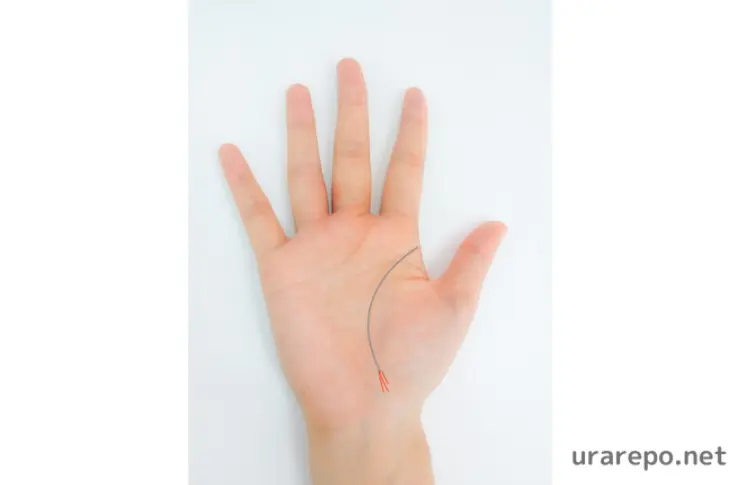 【見た目】:生命線の途中から、手首側に向かって短く細い線が垂れています。